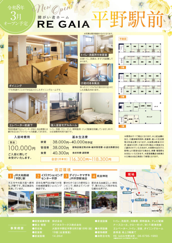 \2026年3月オープン予定!/ RE GAIA平野駅前のチラシができました!